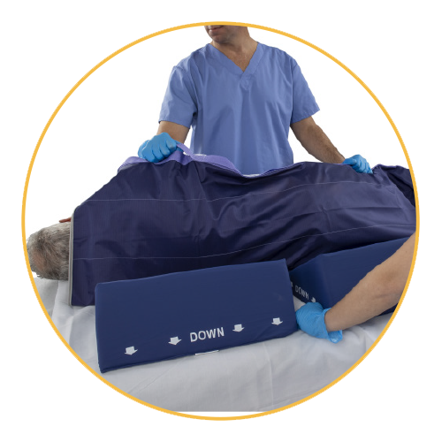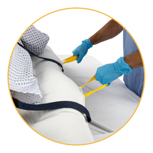 • Incorporates breathable materials allowing the system to be left underneath the patient for high staff compliance when following turning and repositioning protocols